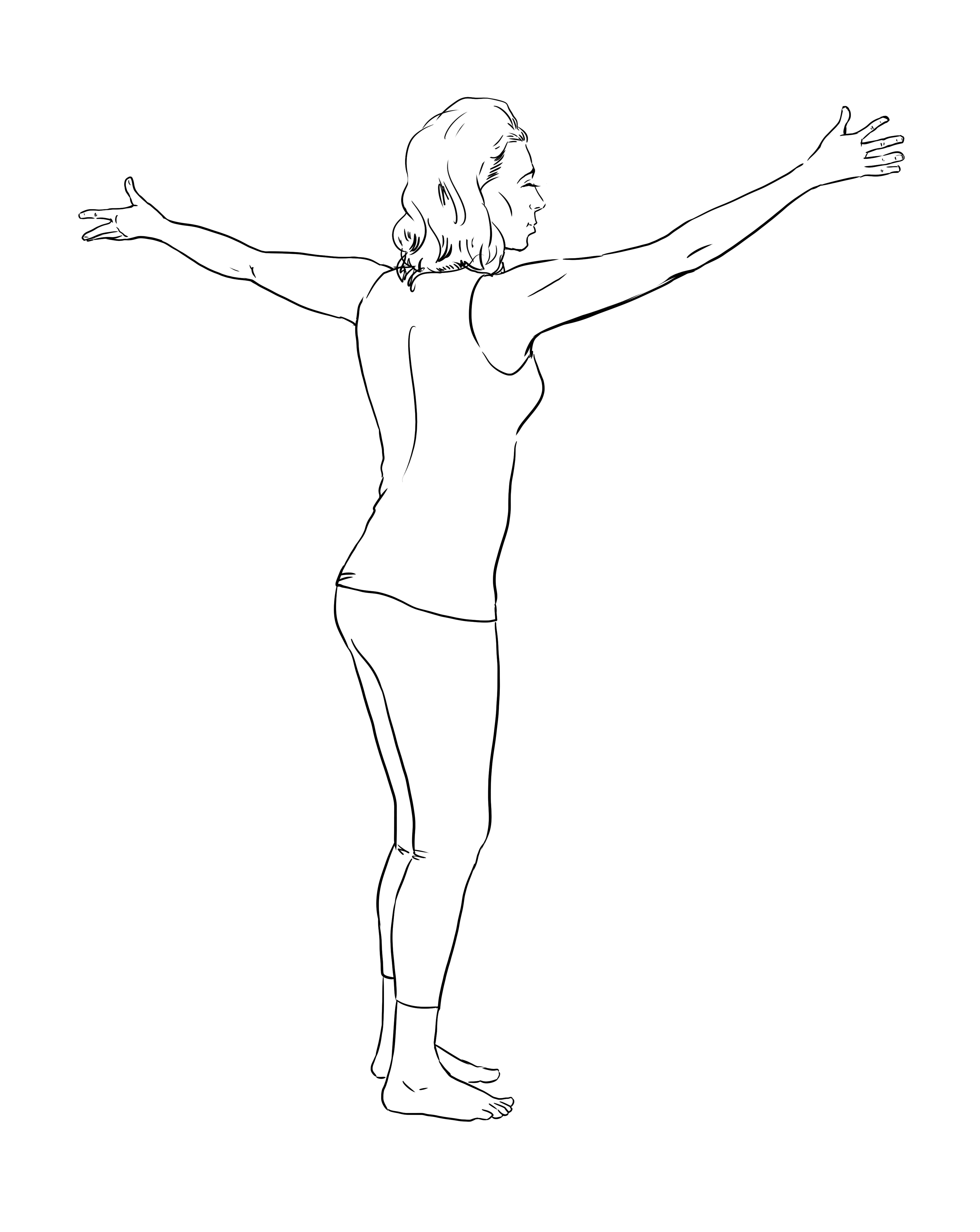 - Swing both arms forward and back, side-to-side, letting their weight create a bouncing motion through the shoulders and release tension commonly built up there from stress and from hunching over, focussing and using a keyboard.