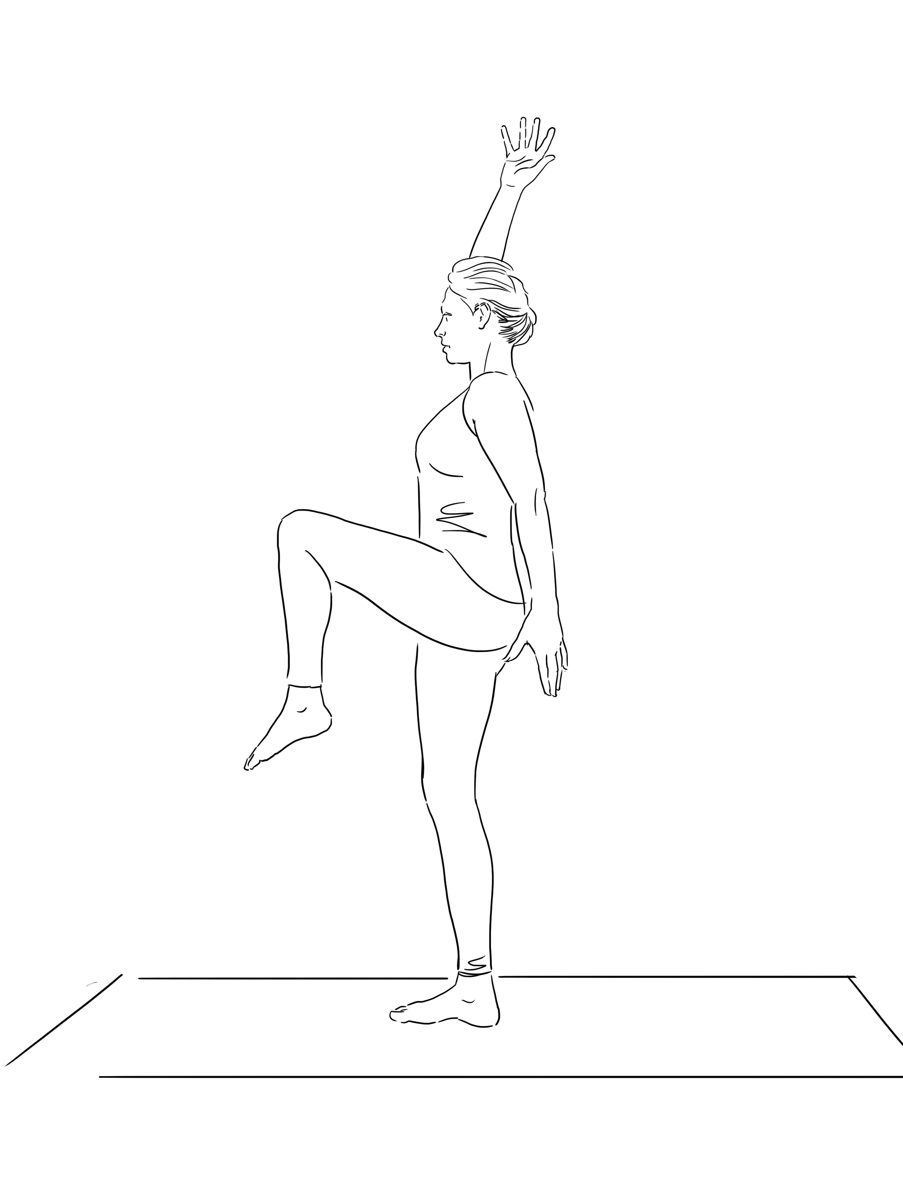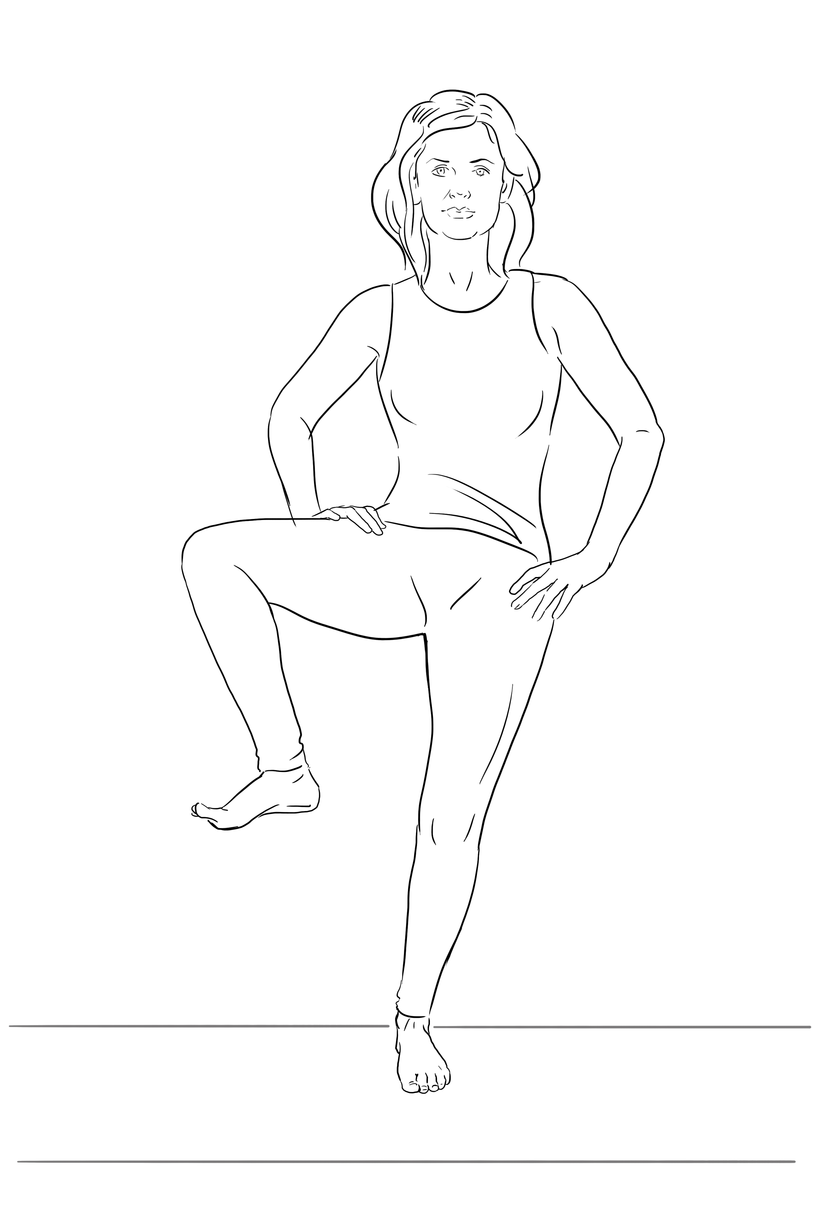 - Lift one foot off the ground and the circle that knee round to create loosening and opening in the hip; either with foot staying off the ground or touching toes there every circle.
