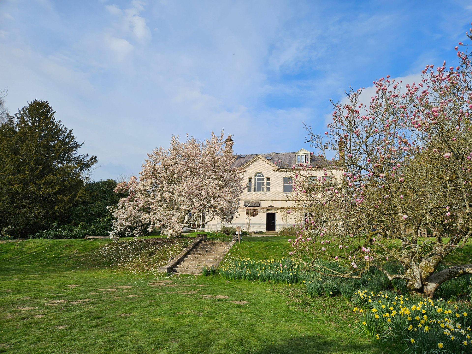 It sits within a 22-acre Botanic Garden with beautiful ponds, lawns and flower beds, a vegetable garden, an apple orchard and a wood full of blue bells in spring. It has many rare trees and over 100 medicinal plants. All the land is managed biodynamically and is fully Demeter Certified. You are encouraged to wander around the estate with its, a medicinal herb garden and many sculptures and flow forms created by students - a very relaxed environment for anyone visiting.